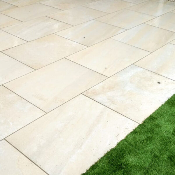 Canyon Ivory Porcelain is perfect for “inside to out” projects, Porcelain paving can be laid on flat roofs, balconies, patios, paths, steps, swimming pools and driveways.